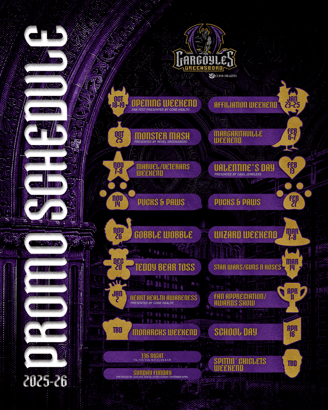 “We’re thrilled to affiliate with the Gargoyles, and reconnect with our franchise’s history in Greensboro,” said Carolina Hurricanes Associate General Manager Darren Yorke. “We look forward to working closely with the Gargoyles staff to develop players who could someday make an impact here in Raleigh.”